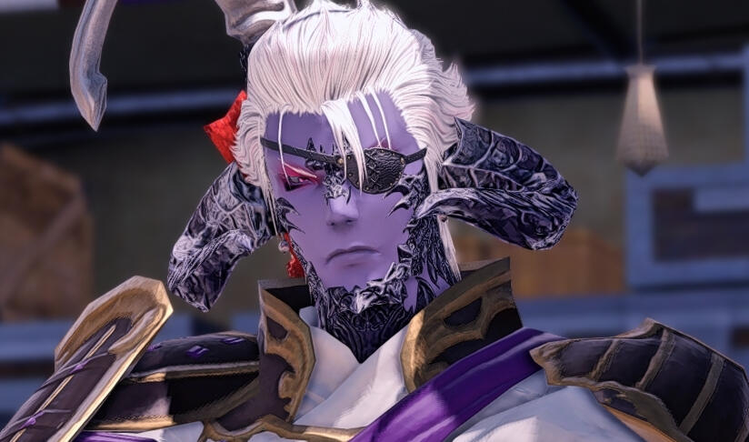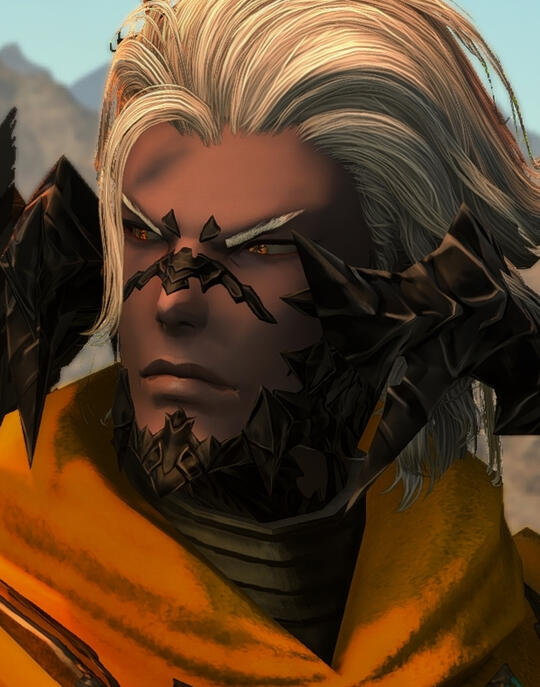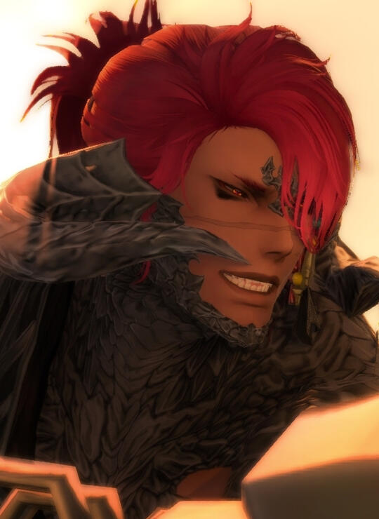 After the Dragonsong War, Ishgard’s gates opening prompted a visit from Tsubame Textiles interested in exploring a potential new market. Used to the relative warmth of Kugane’s coastal winters, Khagadai had been miserable about the trip from the beginning, finding any reason he could to run off from the caravan to hunt. While returning to the group after one of his forays, the xaela found his employer under attack by a dragon— wagons torn and burned, his fellow guards throwing themselves at the immense beast, Tsubame attempting to hide from the fray. Despite his efforts to help his fellows, Khagadai was grievously injured.When at last the group, led by Khagadai in a half-blinded rage, had forced the dragon to flee, the Oronir found his men in states worse than he, and Tsubame laying unconscious in the blood-drenched snow. Using what remained of his dwindling strength, he hauled Tsubame into Ishgard in search of medical aid. And while Tsubame was taken in, tended to until he tragically succumbed to his injuries, Khagadai was turned away— But could he be surprised? He resembled the very Kaiser Behemoth that was known to stalk Coerthas. Surprised? No. Angry, insulted? Yes. So he found himself in the Brume, licking his wounds as he would do on the Steppe until a distant cousin, a Chaghan far from home, Shiraghul, found him.Khagadai then spent the following moon under Shiraghul’s care. His wounds were tended, the pains of a missing eye soothed (somewhat), but his grief over Tsubame’s death ached too deeply for any of the older xaela’s words to reach. The brooding behemoth simply followed Shiraghul around the city, helping those in the Brume and provoking the Temple Knights, trying to find some beacon to follow out of his grief.Recognizing his temporary ward’s potential, Shiraghul pressed a long-gone Dark Knight’s soul crystal into Khagadai’s palm, vowing to help the Oronir channel his boundless pain and anger into a tool. Khagadai was resistant, seeing the way Shiraghul would lose himself to some unseen force when the hymn of battle rang, and kept what had been called his “Darkside” down, only drawing from his newfound well of power in sparse amounts. It wouldn’t do for the Son of Azim to lose himself to some dark ferality. But still he listened to Shiraghul, took their long talks to heart and learning what he could from their encounters with the Temple Knights as he accompanied Shiraghul on his crusade.With the sharp edge of mourning dulled enough to not overwhelm his every waking moment, Khagadai was reminded of his need for gil; he needed to return home and tell Yui, Tsubame’s daughter, and the rest of the company of the tragedy. He had a house to return to, and his heart yearned for a visit to the Azim Steppe. While taking on hunts around Coerthas, the Oronir met a xaela- a Dotharl. The two fought over the rights to a particular hunt mark before begrudgingly deciding to work together and split the bounty. A fortnight of exchanging blows at any provocation and a successful hunt completed, the two had somehow become…something akin to friends, bonding the way of warriors. And when their prize was split and it was time for the two to part ways, Khagadai found himself smiling for the first time in weeks, all the way back to Kugane.